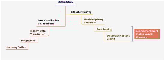 We scoped the data systematically by collecting information from multidisciplinary databases, including medical, pharmaceutical, and computer science domains. This step ensured coverage of diverse perspectives on AI applications in pharmacy. The search included keywords and Boolean operators like AI in drug discovery”, “machine learning in pharmacy”, “challenges in AI for pharmaceuticals”, and “modern AI applications”. A systematic approach extracts key information on applications, methodologies, and challenges.