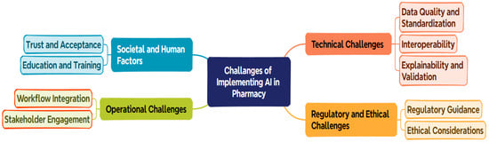 Despite its potential, the successful implementation of AI in pharmacy faces significant challenges. Overcoming technical barriers, including data quality, standardization, and interoperability, is critical to ensuring AI-driven insights’ accuracy, reliability, and applicability. Ethical considerations, such as ensuring algorithmic fairness, maintaining transparency, and safeguarding patient privacy, further complicate the integration process. Additionally, resistance to AI adoption among healthcare professionals and patients underscores the need for education and trust-building measures.