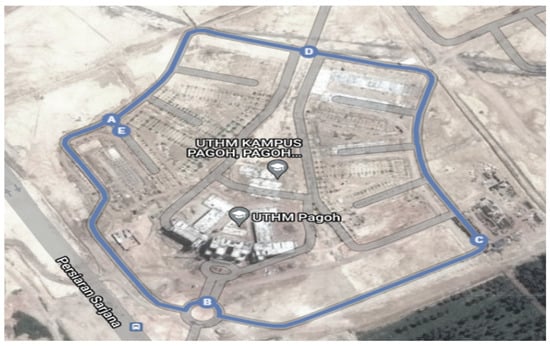 The route consisted of roundabouts, cornering, and straight lines to imitate typical suburban roads in Malaysia. During the experiment session, the participant was instructed to complete the designated route two (2) times. The objective of this was to ensure that the data collected were dependable and accurate. The total distance covered was approximately 15 km, including 3 km for the familiarization session and 12 km for the experiment session.