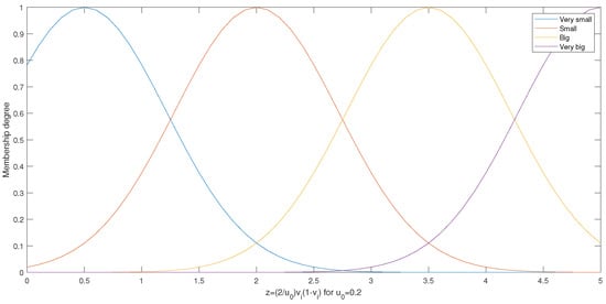 For , we have and we obtain the Gaussian membership functions shown in Figure 2 (obtained for a standard diviation of ). In this case, we can say that , , , and .