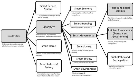 - Purba, F.N.; Arman, A.A. A Systematic Literature Review of Smart Governance. In Proceedings of the 2022 International Conference on Information Technology Systems and Innovation (ICITSI), Bandung, Indonesia, 8–9 November 2022; IEEE: Piscataway, NJ, USA, 2022; pp. 70–75. [Google Scholar]