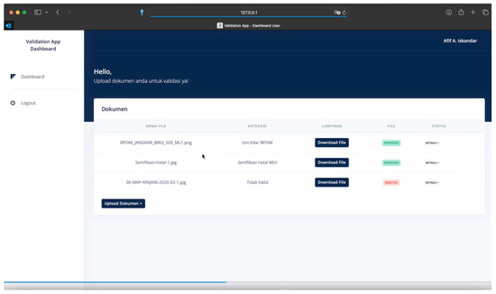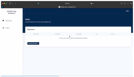 The following process is the data-checking process. If the file entered is incorrect, there will be a message or notification that the file is wrong. If the document is appropriate, a message will be successfully uploaded. Users can upload other documents, and if this is successful, then the users can submit the appropriate documents. The final process is uploading data into the system. If the data finish uploading, there will be a message indicating whether the process was successful (completed) or not (rejected) (see Figure 7).