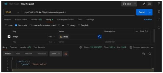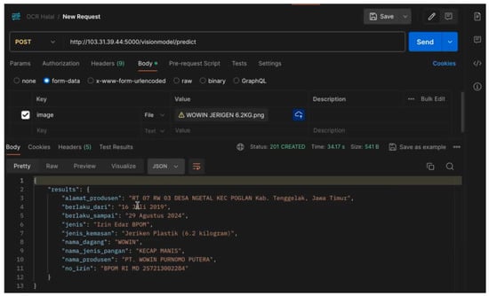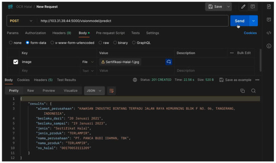 As previously mentioned, there are two checking activities in the data checking process: checking document types and keywords. This study had two critical documents as samples, namely a halal certificate and a BPOM license (a detailed explanation of why only two documents mentioned in Section 5.2). After checking the document type, the next step is checking the keywords for each document (see Table 6). If these keywords match, then other data in the document will be retrieved to complete the information from the uploaded document. These supporting data include the certificate number, product information, and product identity, such as name, address, and validity date.