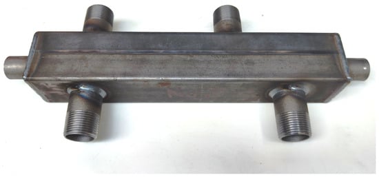 The presented analysis is based on data obtained during a real welding process in a robotic cell using a Fronius® welding system (TPS500i) manufactured by Fronius GmbH (Wels, Austria) [76]. Data were recorded over a period of 78 min, during which the robot cyclically repeated several welding steps that varied in the length and shape of the welding path. These data were stored at a constant interval of 4.2 s, while the typical amount of data recorded in a single experiment was approximately 1200 points. The experiment was repeated for several welded samples, yielding the same nature of results each time. During operation, the following parameters were recorded: electric current intensity (A), electric power (W), electric voltage of the welding power supply (V), welding time (s), wire feed speed (WFS) (m/min), and system energy consumption (kJ). The welding method used was MIG/MAG (gas metal arc welding) [77]. Heat exchangers for domestic applications, made of ordinary carbon steel, were used as samples for the experiments (Figure 1). The typical length of the weld paths ranged from about 60 mm to 80 mm. There were six welds securing the tubes around their circumferences and eight straight welds attaching the front square surfaces. A typical welding process for these paths was split into single events of varying durations, with the duration of a single event typically not exceeding 6 s.