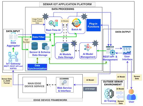 - Panduman, Y.Y.F.; Funabiki, N.; Puspitaningayu, P.; Kuribayashi, M.; Sukaridhoto, S.; Kao, W.-C. Design and Implementation of SEMAR IoT Server Platform with Applications. Sensors 2022, 22, 6436. [Google Scholar] [CrossRef] [PubMed]