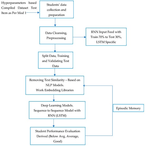 The abovementioned examples are the two projected questions belonging to two distinct classes. Example 1 belongs to Knowledge, and Example 2 fits into Analysis. However, if we investigate both question statements, it is observed that both contain the identical action verb referred to as “Define”. The defined methodology is mainly divided into two modules, data pre-processing and data processing module. The defined modules are then followed up by the cognitive level prediction model (the pool-of-question level identification), which is based on RNN and students cognitive assessment model. A total of 300 students were tested on the pool of cognitive-level questions to test their cognitive level in Episode 1. A comparison of iterative episodes was used to study the learning improvement as per the CLO threshold, which was set at 70% (Good). The detail for each component is discussed in the following sections and subsections.