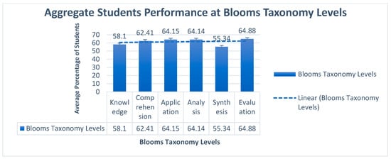 Ultimately, it also helps in understanding what the teacher is delivering to students, as well as the scale of the students’ learning maps in their learning process []. COVID-19 forced academics to face the dire need to not only engage students effectively to ensure regular study online but also to implement an assessment process specific to students’ cognitive behavior and learning levels.