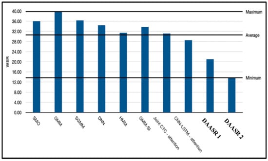 The results of this study underscore the effectiveness of our proposed DAASR models in achieving significant improvements in WER compared to state-of-the-art Arabic speech recognition systems. DAASR1 reduced WER by over 7% relative to previous methods, while DAASR2 further advanced performance, achieving a remarkable WER of 13.7%. These improvements highlight the impact of incorporating transfer learning and transformer-based architectures in automatic speech recognition tasks.