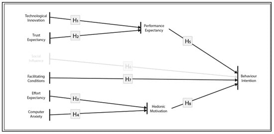 - H10: Technological innovation (TI) will influence performance expectancy (PE).