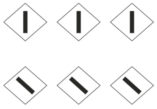 - Treisman, A.; Souther, J. Search asymmetry: A diagnostic for preattentive processing of separable features. J. Exp. Psychol. Gen. 1985, 114, 285–310. [Google Scholar] [CrossRef] [PubMed]
