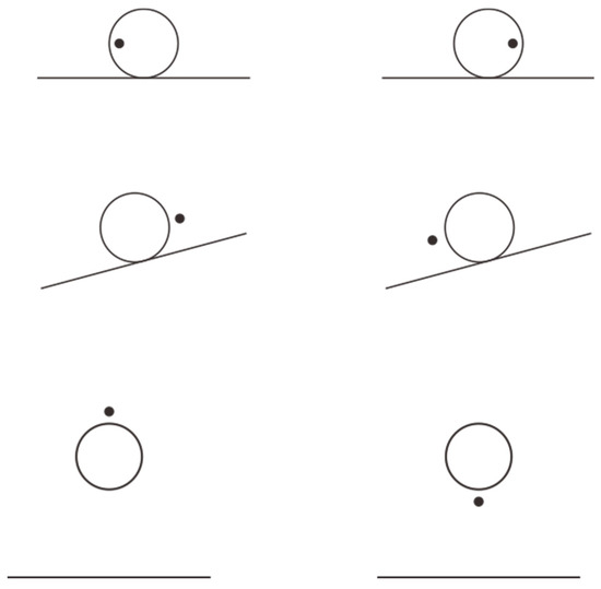 Note also that the grouping of the dots follows the accentuated directionality rather than proximity or similarity, as suggested by Wertheimer. Regarding similarity, the presence of a single dot or an external dot, even if of opposite polar contrast, should not fall under the principle of similarity. On the contrary, that single dot acts as a dissimilar element entirely independent of similarity (cf. [17,18,19]).