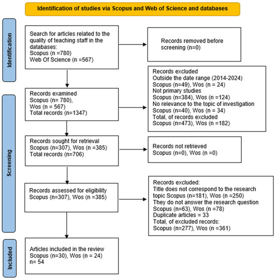 For data collection, relevant publications were identified and studied. The search covered the topics of teacher teaching quality, teacher performance evaluation, and teacher quality, which guaranteed comprehensive coverage based on machine learning in higher education. For the analysis of the articles that passed the abstract selection stage, they were reviewed in their entirety to ensure that they presented empirical findings, theoretical advances, and the application of ML and that they answered the research questions. We had the help of education experts who allowed us to identify the different variables of the factors and thus be able to merge similar factors or define their names. This focused search strategy represented recent advances in ML, particularly in its application in higher education.