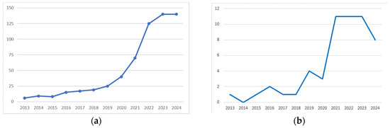 Number of publications per year: (a) potentially eligible and (b) selected studies.