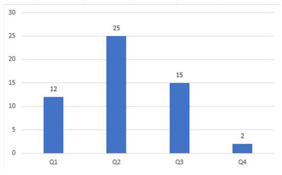 Of the total number of articles selected, 68.52% are in the Q1 and Q2 quartiles, which indicates a great interest in TQUT and guarantees that the results obtained in this research are reliable (see Figure 3).