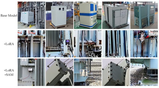 From the data in Table 7, it is evident that the inclusion of the LoRA and SAM modules led to a significant improvement in the model’s performance across the evaluation metrics. Notably, there was an enhancement in the Recall metric, which typically indicates that, after data augmentation with the proposed model, the object detection model is better able to reduce false negatives. This improvement is of particular significance in the field of transformer anomaly detection.