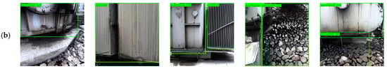 - Improving dataset diversity: image data of substation equipment under sunny and rainy conditions were generated to increase the diversity of the dataset by taking weather changes as an example. The generated augmented image data were labeled and added to the training, validation, and test datasets in a ratio of 7:2:1, respectively.