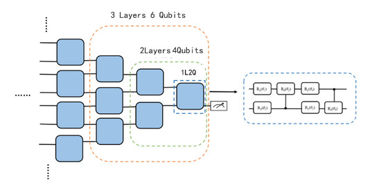 In the design of quantum convolutional circuits, we selected a quantum circuit with four qubits. To further justify this choice over other possible qubit numbers, we conducted a comparative experiment. In this experiment, based on a hierarchical circuit structure, we constructed quantum convolutional circuits with different configurations, namely, a single-layer two-qubit circuit, a two-layer four-qubit circuit, and a three-layer six-qubit circuit, as illustrated in Figure 6. Ultimately, by comparing the performance of circuits with different hierarchical structures, we identified the optimal circuit configuration.