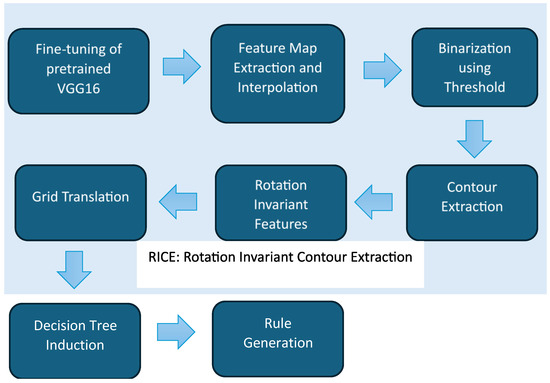 - Sharma, A.K. Human Interpretable Rule Generation from Convolutional Neural Networks Using RICE: Rotation Invariant Contour Extraction. Master’s Thesis, University of North Texas, Denton Texas, TX, USA, July 2024. [Google Scholar]