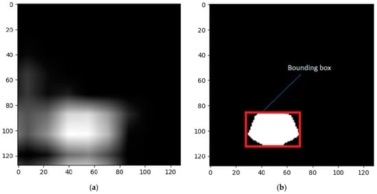 We followed the same approach as with CelebA to predict the test images and extract feature maps of dimensions 8 × 8 from the last convolution layer. We then mapped the 7 × 7 feature maps to the 128 × 128 original images using interpolation with a threshold of 95%, where the intensity of the top 5% brightest pixels was set to 255 and the rest to 0. Applying this threshold resulted in disjointed contours, similar to the last experiment.
