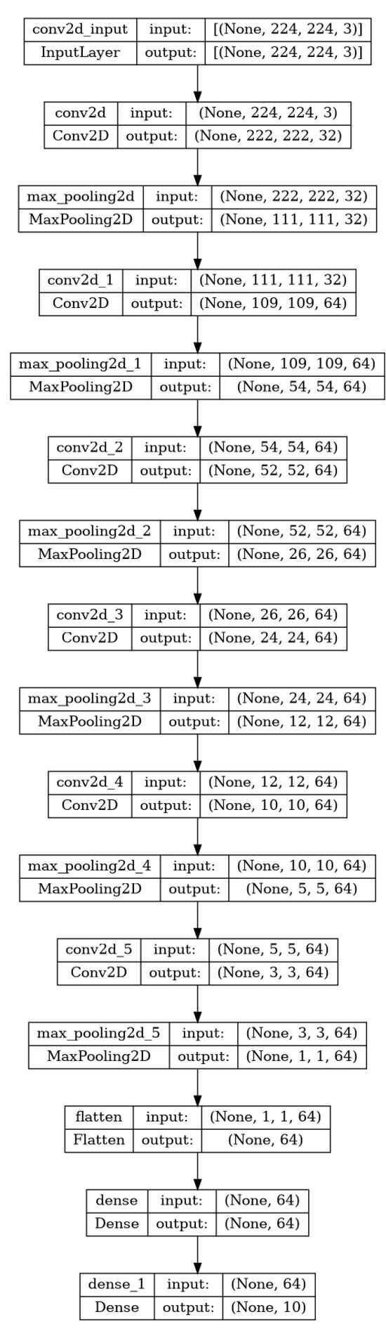 Our proposed CNN model was developed from scratch and consists of multiple layers. Each layer progressively learns more complex features from the input images. A short description for each layer of the proposed CNN model follows: