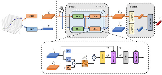 The BFIM module consists of multiple layers with identical structures, each mainly formed by a Transformer encoder module (TEM) and a cross-attention fusion module (CFM). Each layer of the BFIM receives two feature matrices from the previous layer and outputs the feature matrices after interactive fusion. The operation of the i-th layer is expressed by the following formula: