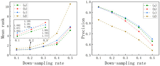 The result indicates that scheme (a) overall exhibits the best performance in the MR experiments. However, scheme (c) outperforms scheme (a) in terms of precision metrics when the down-sampling rate exceeds 0.3, but it shows poorer MR metrics. This is due to strategy (c)’s exclusive reliance on the coarse-grained branch, which leads to difficulty in distinguishing between trajectories with similar structures.