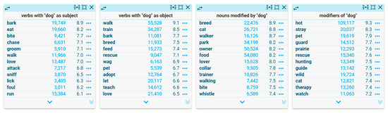 WS columns for dog in the corpus English Web 2021 (enTenTen21).