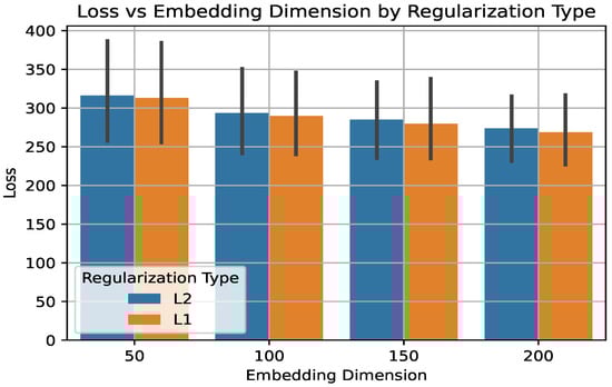 The optimal overall configuration was obtained with L2 regularization, an embedding dimension of 50, a learning rate of 0.001, the Adam optimizer, and a batch size of 64. The ideal regularization parameter (weight decay) was 0.0001, obtaining the lowest test loss of 113.5095. This setup achieves a balance between regularization efficiency and model capacity, resulting in the greatest overall performance of the examined hyperparameter sets.