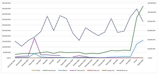 Based on the limitations identified and the results obtained, some suggestions for future research are as follows: expanding the analysis period; conducting a longitudinal study with data from a longer period, which would allow for a more accurate assessment of the evolution of the metrics and their impact on revenue; performing a multichannel analysis to investigate the impact of metrics on various social media platforms (Facebook, LinkedIn, etc.) to verify whether the correlation between metrics and revenue is maintained or varies between networks, including external variables that may be integrated into the model, such as offline marketing campaigns, seasonal events, and economic factors that can help better explain fluctuations in revenue; and finally, refining the loyalty rate metric to include other parameters such as the frequency of interaction per follower, which can improve its predictive capacity. Also, to evaluate the emotional and affective component that exists in the digital environment, additional metrics that come from the application of algorithms and sentiment analysis may be taken into consideration in addition to the ones that are presented in this study. These metrics are intended to measure sentiment and, when feasible, emotion expressed in social media.