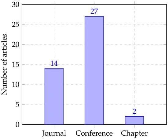 In this section, we present a descriptive analysis of the 43 relevant articles identified during the third evaluation phase. The aim is to provide an overview of their temporal distribution, publication types, conference fields, and research focus.