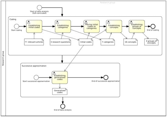 To obtain more explicit answers to research questions, further analysis and especially synthesis of the gathered data was required. Here we used coding and successive approximation techniques for analysing the qualitative data gained from relevant articles, according to [67].