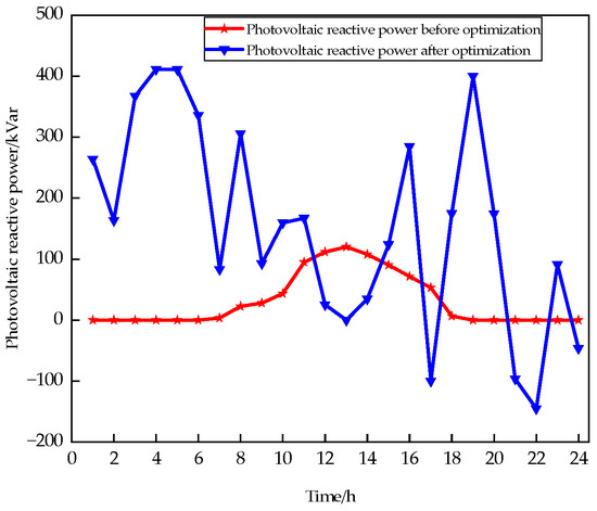 The reactive power demand before and after the participation of multiple flexible loads in collaborative interaction is shown in Figure 10 and Figure 11.