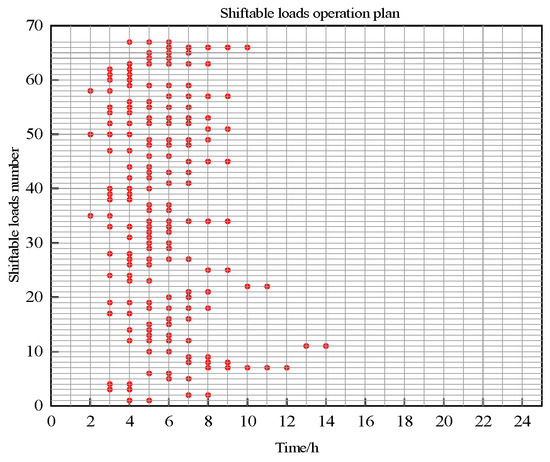 The operation plan and reactive power demand after the participation of shiftable loads in collaborative interaction are shown in Figure 12 and Figure 13. The working period is mainly shifted to around 6:00. Therefore, from one perspective, peak reactive power demand is reduced by shifting the operation period, thus completing peak shaving and valley filling for the reactive power load curve. From another perspective, combined with Figure 10 and Figure 11, it is found that the overall reactive power demand is reduced after optimizing the multiple flexible loads, thereby reducing the reactive power flow on the branch and achieving the goal of reducing losses.