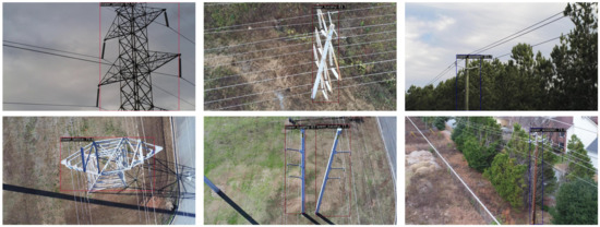 Over the past decade, the technological advancements in Unmanned Aerial Vehicles (UAVs) have significantly expanded their use in intelligent power grid inspections and power engineering planning. UAVs have proven to be highly effective in various applications [1,2], including defect detection [3], anomaly detection [4], and georeferenced image matching [5]. In power engineering, transmission towers (TTs) are critical components of the power transmission infrastructure. Ensuring their structural integrity is essential for the stable operation of the power system. Automatic TT detection from aerial images can significantly improve inspection efficiency, reduce costs, and improve responsiveness to power equipment failures.