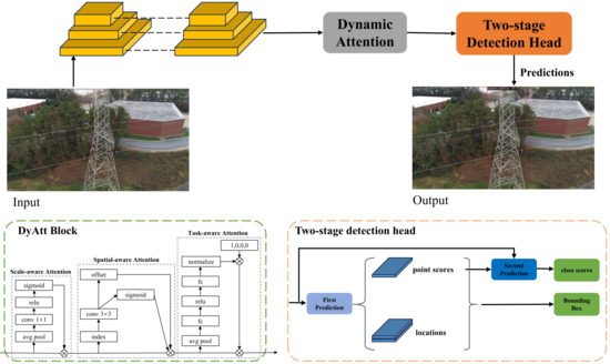 Aerial images present significant challenges for accurate detection due to interference from environmental conditions and the presence of objects resembling TTs. To mitigate the influence of these problems, an effective method is to use an attention mechanism that enhances the feature extraction ability, enabling the model to focus on the object information. Over the past decade, researchers have proposed various attention-based approaches for improved performance, such as SENet [33] and CBAM [34]. However, traditional attention mechanisms usually operate independently on a single dimension, lacking a consideration of multi-dimensional optimization. For example, SENet emphasizes channel-wise importance, while CBAM focuses on spatial attention. Therefore, we adopt a unified framework, including dynamic attention [35], which integrates multi-dimensional information to emphasize TT detection.