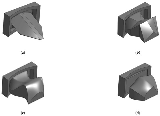 The input variables (set A in Figure 4) are those which define the device geometry in the optimization loop. The deflector geometry is generated with a loft function defined between planar parallel shapes, as shown in Figure 5.