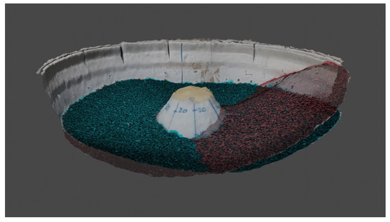 These parameters can significantly influence the simulation results, and inaccurate values can lead to marked discrepancies between the simulated and real-world behavior. In this sutdy, an optimization algorithm was employed for the calibration of such parameters. This algorithm systematically adjusted the parameters until the simulation results closely matched experimental data for the angle of repose test. This activity is documented in [28], and the values of the calibrated DEM parameters are summarized in Table 3. For further details, please refer to the cited article.
