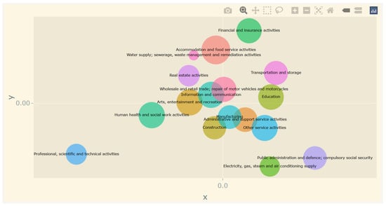 With more detail, while most sectors were associated with more than one area of interest, the Electricity, gas, steam and air conditioning supply and Manufacturing sectors were related to distinct concepts, i.e., presentation software and web programming, respectively. Furthermore, the Education sector should be considered as the most appropriate sector for Research and innovation activities while the Information and communication sector was proved as the most generic option; i.e., many areas of interest were observed.
