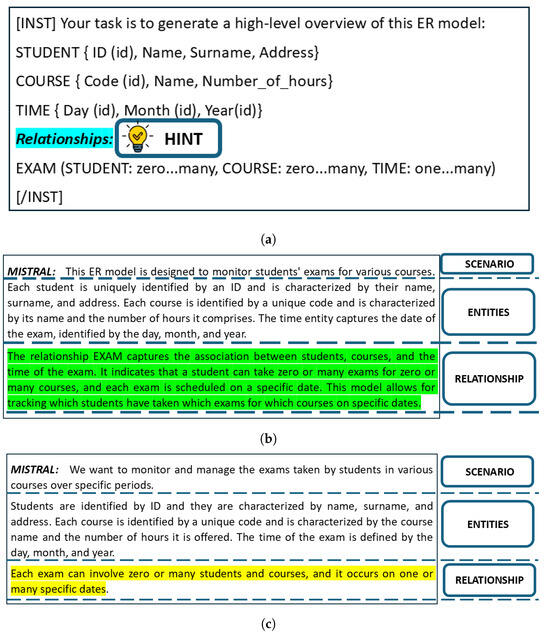 ER descriptions in Figure 4b,c were generated by Mistral and they are reported as an example; a similar solution (with some variations in the notation) is obtained using other LLMs.