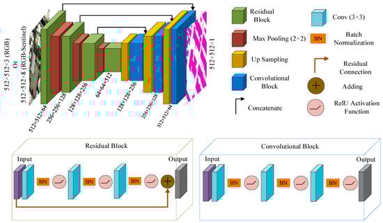 Various networks, including fully convolutional networks (FCNs) [], U-Net [], DenseNet [], ResNet [], and HRNet [], have been employed for classification and segmentation tasks, particularly for building footprint extraction.