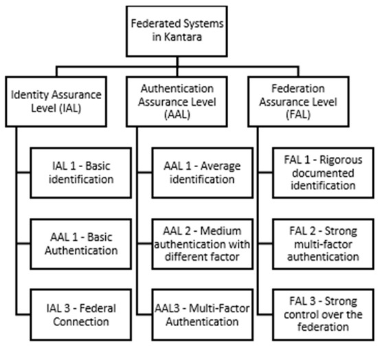 Kantara profiles represent an advanced system for defining security levels to enable reliable and secure identity management in various digital environments [22]. Kantara profiles focus on three key aspects designed to support a range of needs in the context of identity management and federated exchanges; namely, identity assurance levels (IAL), authentication assurance levels (AAL), and federation assurance levels (FAL) [23].