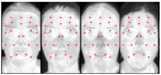 In [17], a CNN algorithm was utilized in thermal-based facial recognition. The authors set a resolution of 128 × 160 pixels for the images captured using the infrared camera Vision Micron/A10 Model (18 mm, f/1.6). The study involves two stages, i.e., face recognition and drunk classification. The face recognition stage was reported to achieve a recognition accuracy of 97%. On the other hand, the drunk classification stage achieved 87% accuracy. Twenty-two precise places on the face were utilized to construct a feature vector. Fisher’s linear discriminant was applied for dimensionality reduction, and the Gaussian mixture model was used for classification. In [18], the authors compared four deep learning models to classify thermal images into four categories, i.e., normal (sober), one glass, two glasses, and three glasses. The thermal images were obtained using thermal cameras for smartphones, FLIR ONE, with a resolution of 160 × 120 pixels. NasnetMobile outperformed EfficientNet-B1, MobileNetV2, and Inception V4 with an 85.10% accuracy.