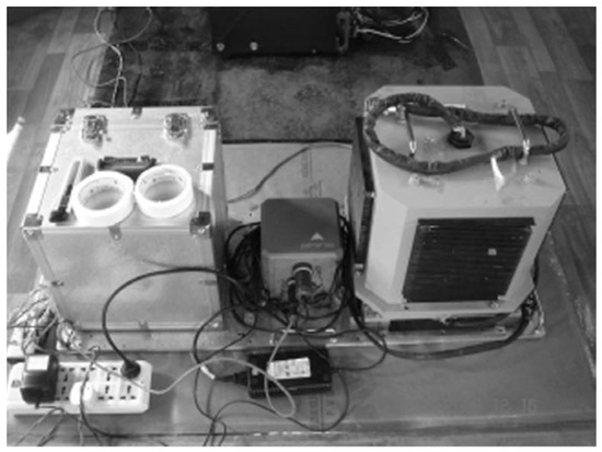 To further verify the practical feasibility of the proposed MLG-AMSSRCPF algorithm for the initial alignment of underwater vehicles on a marine dynamic platform, a comparative experiment was conducted using real-world measurement data obtained from a sea trial. The traditional CPF and UKF algorithms, along with the proposed MLG-AMSSRCPF algorithm, were applied for comparative analysis. The installation layout of the experimental equipment is illustrated in Figure 7. As shown, the ballast box is positioned on the left, the Doppler velocity log (DVL) is mounted in the center, and the fiber optic gyroscope is located on the right.