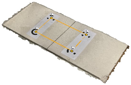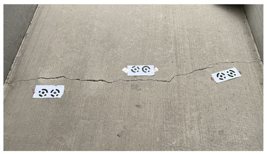 A structured image acquisition process was implemented to ensure accurate 3D reconstruction and crack assessment. A high-resolution digital camera (5 MP or higher) was used, avoiding ultra-wide-angle and fisheye lenses to minimize distortions. Key camera parameters—including ISO level, exposure time, and aperture size—were optimized to balance image quality and clarity, in accordance with the guidelines for photogrammetric processing provided in the Agisoft Metashape User Manual [19]. Circular targets were placed around or on the object, with the measured distances between them providing a reference for scene scaling. Although targets are preferred for their accuracy, in cases where using them is not possible, distinct features on the object itself, such as corners, edges, or other identifiable elements, can be manually selected and their known distances recorded. The related scene can be scaled using these manually selected distances.