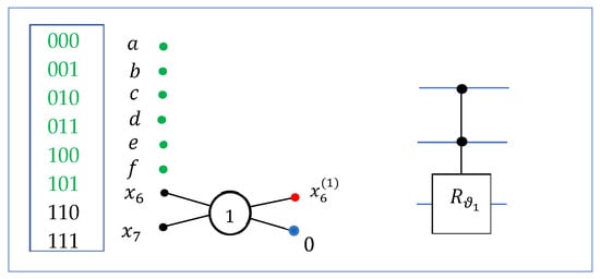 The quantum circuit for transform is given in Figure 14. Five controlled-rotation gates are used in this circuit. After applying this transform on matrix , in this stage of the QR factorization, we obtain the new matrix, .