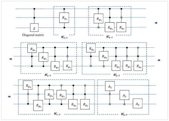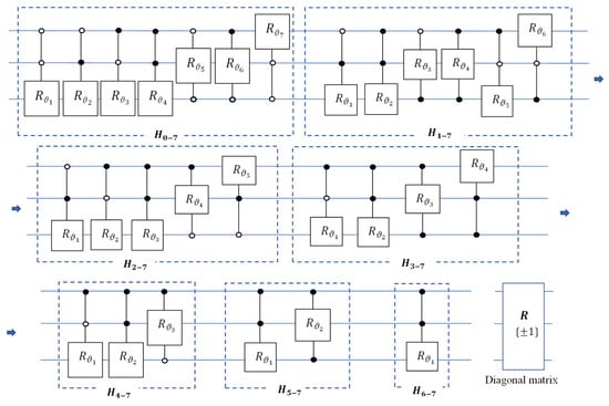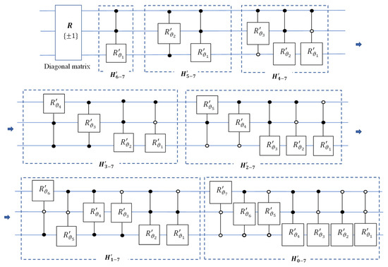 This transform generated by the first column of is used in the first step in the QR decomposition of the 8 8-square matrix, Next, we describe six other required transforms with the corresponding diagrams and quantum circuits.