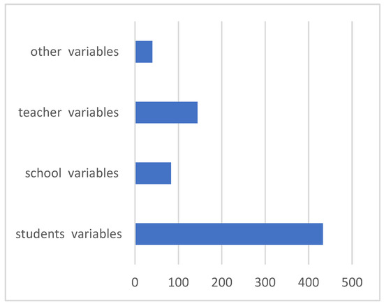 The final dataset contained 8458 individual student entries following the data-integration process. This dataset comprised approximately 700 variables, offering detailed information on various aspects, such as students’ backgrounds, teacher characteristics, and school-level factors (Figure 1). The diversity and depth of these variables provided an extensive and valuable dataset to investigate the contextual determinants of mathematics achievement among Moroccan students.
