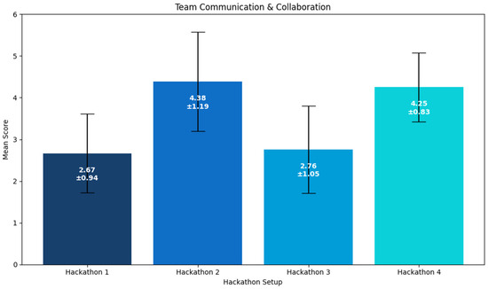 Participants’ ratings of team collaboration/communication across the four hackathons.