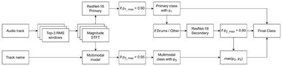 The hierarchical design delivers multiple benefits to our automation system. By focusing each specialized model on distinguishing between similar instruments within a category, we achieve more nuanced feature learning and improved accuracy. The approach also reduces model complexity by dividing the classification problem into manageable subproblems. Furthermore, our pipeline processes tracks efficiently by applying Secondary models only when needed, and remains extensible, allowing new instrument subcategories to be added to each branch without restructuring the entire system.