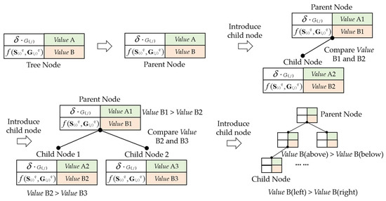 | 20: | ①The stored of corresponds to , and the stored of child nodes and correspond to and , there is ; ② The stored of corresponds to , and the stored of left node corresponds to , the stored of right node corresponds to , there is . |
